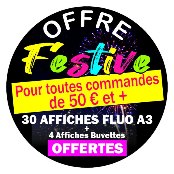 Affiches A4 (21 x 29,7 cm) flashy et impactantes au format idéal pour les vitrines de magasin sur papier fluo avec 4 couleurs au choix !