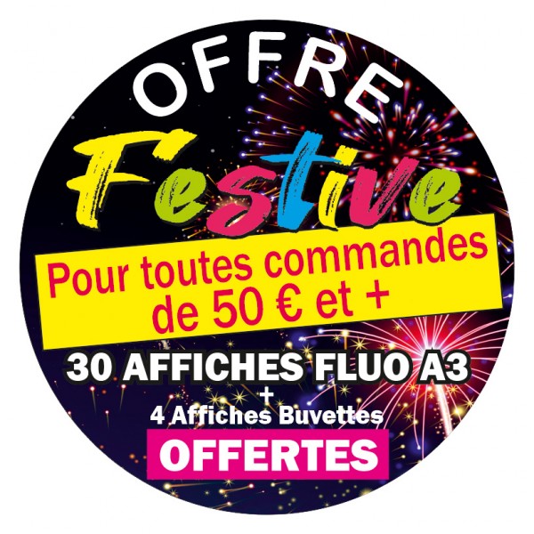 Affiches A4 (21 x 29,7 cm) "flashy" et impactantes au format idéal pour les vitrines de magasin sur papier fluo avec 4 couleurs au choix !